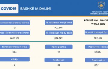 • 14 raste pozitive me COVID-19 në 24 orët e fundit në Kosovë