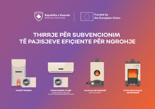 Ministria e Ekonomisë sot ka shpallur thirrjen publike për subvencionim të pajisjeve efiçiente për ngrohje për shtëpi dhe banesa të financuara nga Bashkimi Evropian (BE).