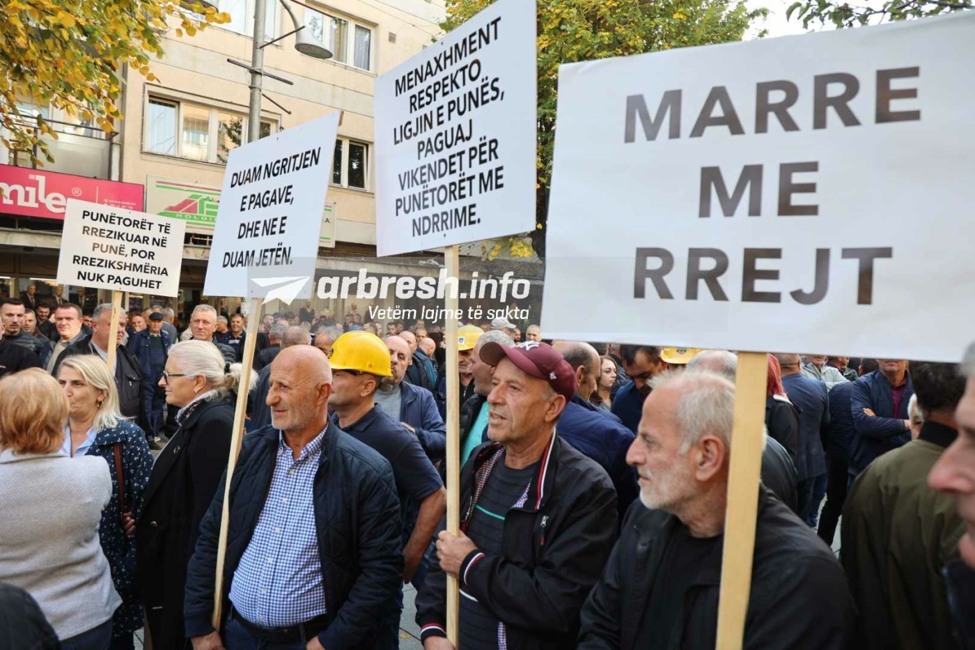 Dhjetëra punëtorë të Sindikatës së Re KEK-ut po protestojnë para zyrave të KEK-ut.