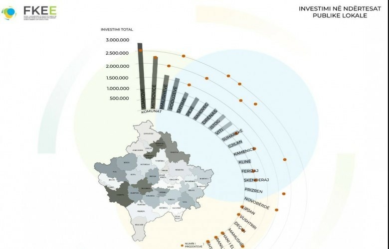 FKEE në grafikonët e mëposhtëm, jep informacione, ku vërehet shpërndarja nëpër komuna e mbi 37 milionë euro investime nga FKEE në sektorë të ndryshëm.