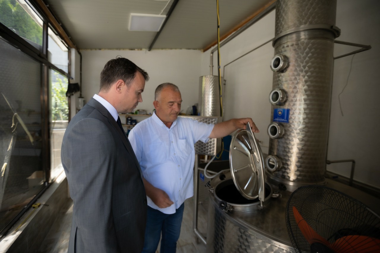 Ministri i Bujqësisë, Pylltarisë dhe Zhvillimit Rural, Faton Peci realizoi vizitën e radhës në terren në bodrumin e verës “Eko Wine” në Rahovec ku u prit nga pronarët Mujë dhe Bekim Hoxha, të cilët njëkohësisht në kuadër të aktivitetit të tyre janë përfitues të projektit në vlerë prej 400 mijë Euro në kategorinë e granteve investive në bujqësi.