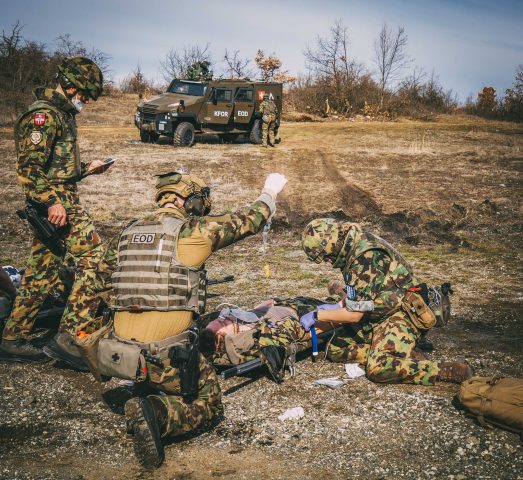 Ekipi i KFOR-it të EOD-së zvicerane me mjekë mbajti një trajnim se si mund ta mbështesin më së miri njëri-tjetrin në terren.