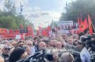 • - Ramiz Lladrovci dhe Sami Lushtaku shihen afër njëri-tjetrit në protestën kundër Gjykatës S...