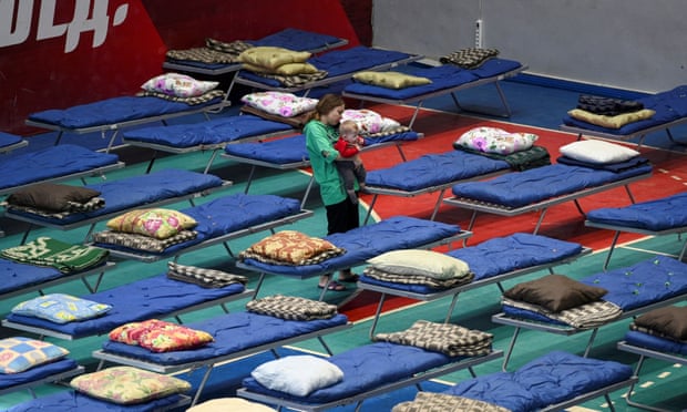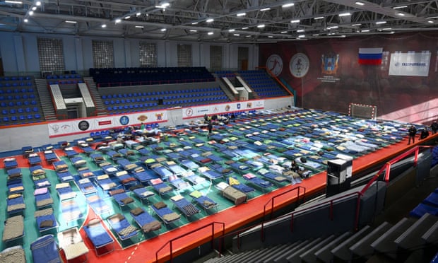 Reuters ka publikuar fotot e një qendre akomodimi të përkohshëm në një sallë sportive shkollore në Rusi për të evakuuarit nga rajonet e kontrolluara nga separatistët në Ukrainën lindore.