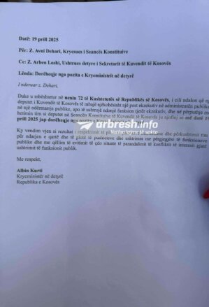 Dorëheqja e tij është bërë edhe sot para fillimit të seancës konstituive./Arbresh.info