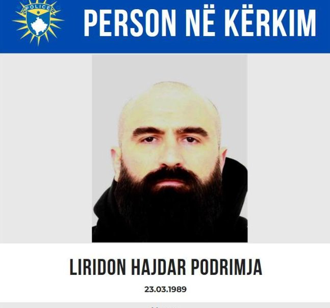 Policia e Kosovës ka shpallur në kërkim Liridon Podrimaj nga Gjakova i dyshuar për disa vepra penale.