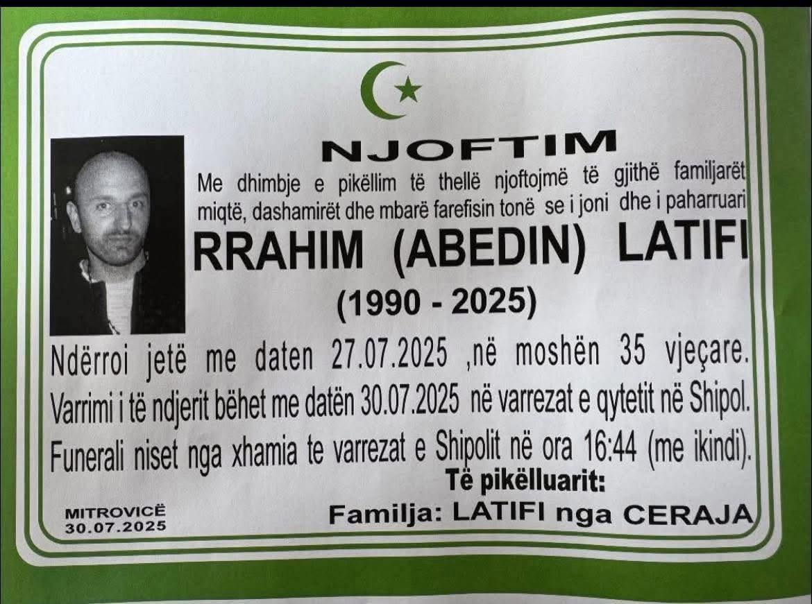 Ceremonia mortore për mërgimtarin nga Suedia do të mbahet me fillim nga ora 16:44 në varrezat e Shipolit në Mitrovicë.