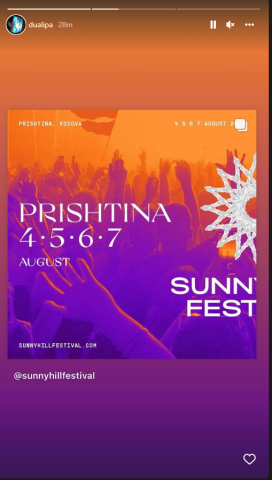 Këngëtarja e njohur, Dua Lipame anë të një Inststory posotoi datat zyrtare se kur ddo të mbahet festivali në Prishtinë.