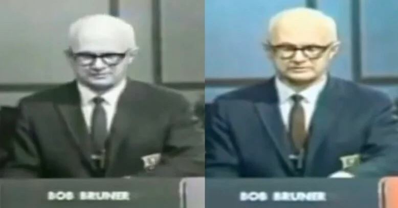 Por edicioni i parë i lajmeve që njohu këtë ndryshim të madh plotësisht, ishte ai në Shtetet e Bashkuara më 14 Prill 1967. Spikeri i kanalit “WMT-TV Channel” në Lowa, Bob Bruner u shpreh: Jam i nderuar që jam i pari personazh televiziv që do shihni me ngjyra, por ka dhe kaq shumë gjëra të tjera për të parë!