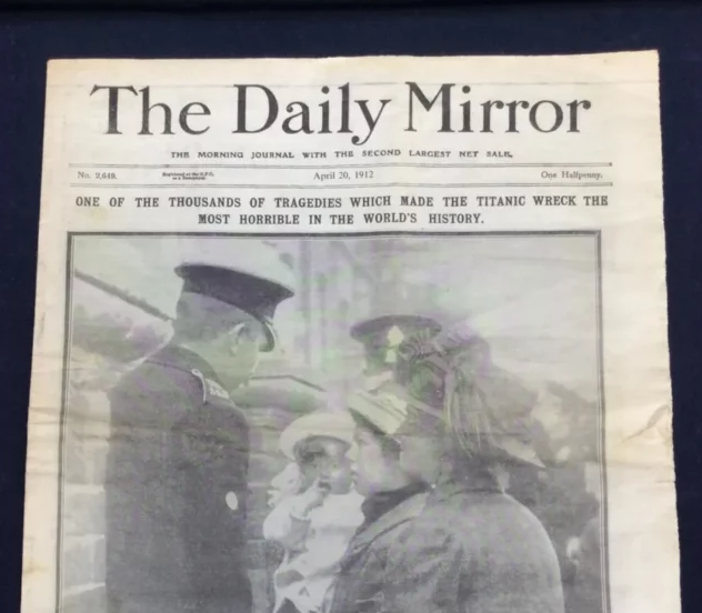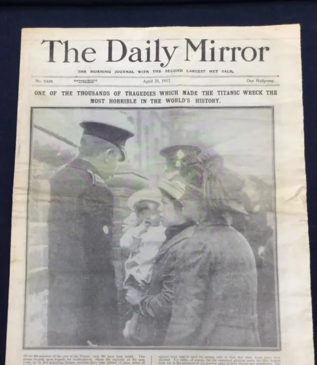 E datës 20 prill 1912, faqja e parë e gazetës britanike The Daily Mirror tregon dy gra në Southampton, porti anglez nga ku nisi Titaniku, në pritje të dërgimit të listës së të mbijetuarve.