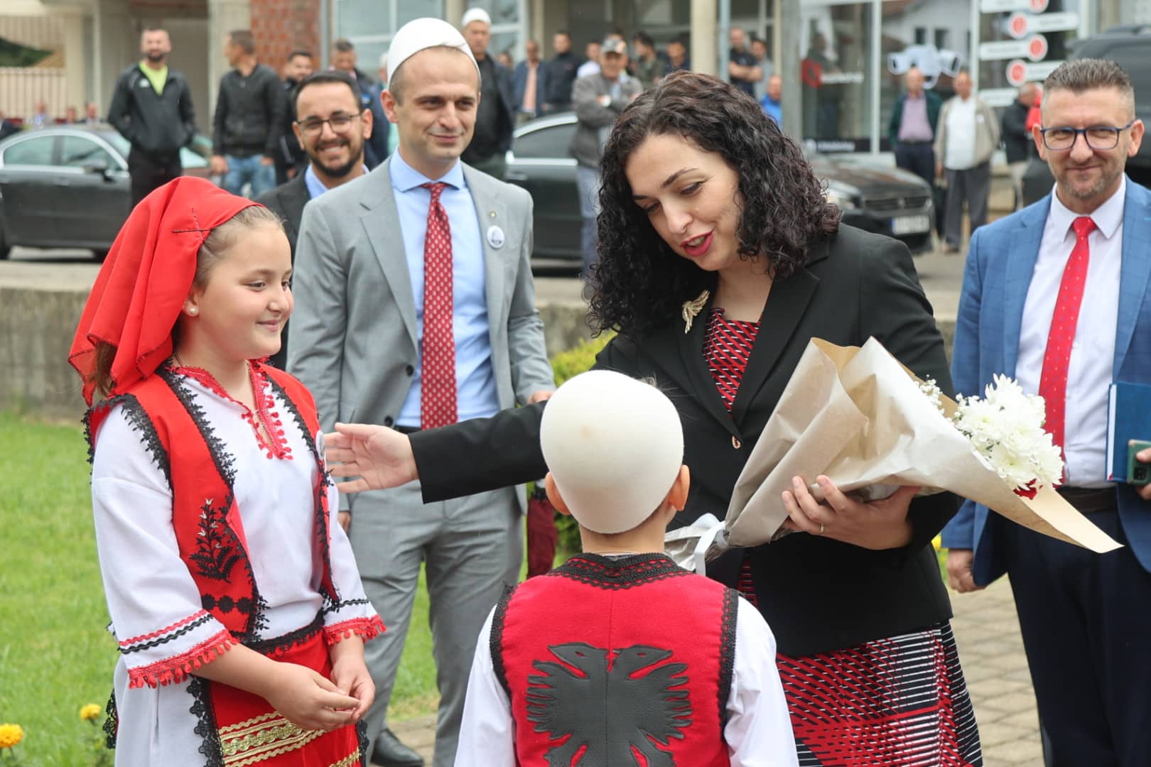 Presidentja e Republikës së Kosovës, Vjosa Osmani Sadriu, po qëndron në Junik.