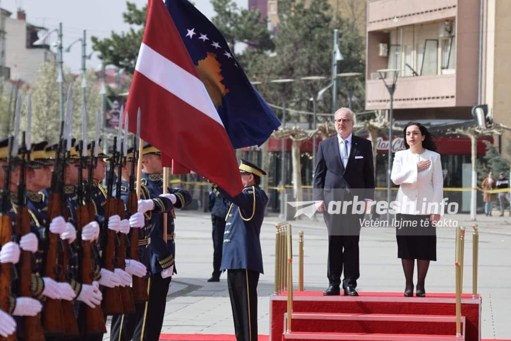 Presidentja e Kosovës, Vjosa Osmani, ka pritur me ceremoni shtetërore presidentin e Letonisë, Egils Levits.