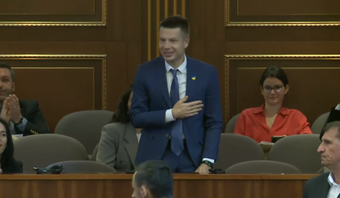 Ai u mirëprit me duartrokitje nga deputetët e tjerë, ndërsa kuvendi mbajti një minutë heshtje për viktimat e luftës në Ukrainë.