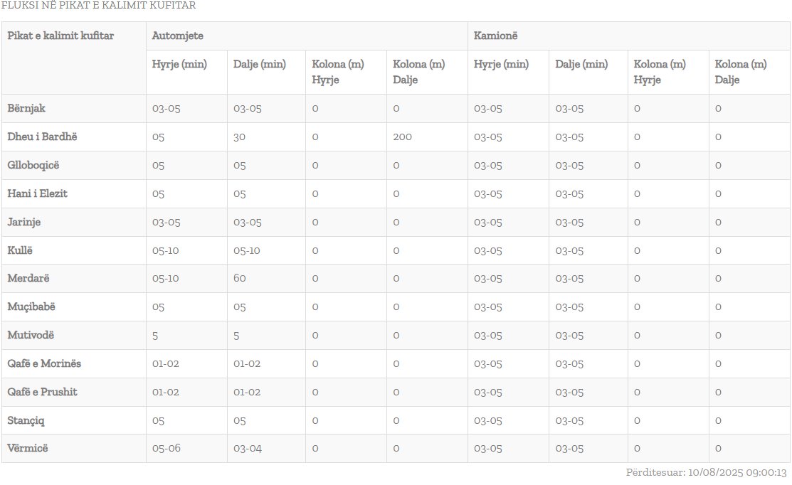 Sipas QKMK-së, pritje deri në 1 orë ka në Merdarë në dalje nga vendi, ndërsa për të hyrë nga kjo pikë kufitare pritjet zgjasin jo më shumë se 10 minuta, shkruan Arbresh.info
