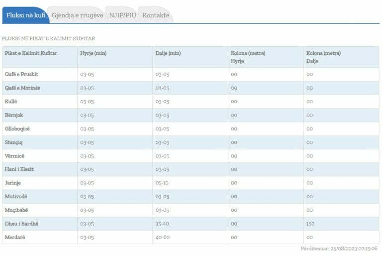 Qendra Kombëtare për Menaxhim Kufitar ka njoftuar se pritjet për dalje nga pika kufitare në Merdarë janë deri në 1 orë