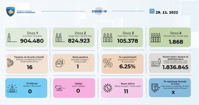 Aktualisht në Kosovë janë 11 raste aktive me COVID-19.