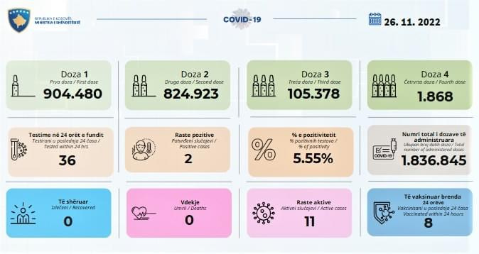 Aktualisht në vendin tonë janë 11 raste aktive me virusin Covid19.