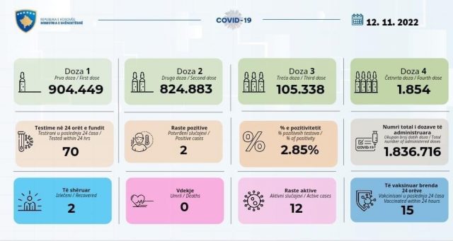 Aktualisht në Kosovë janë 12 raste aktive me Covid19.