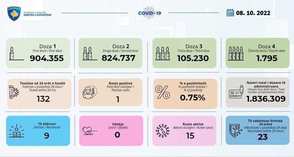 Aktualisht në Kosovë janë 15 raste aktive me COVID-19.