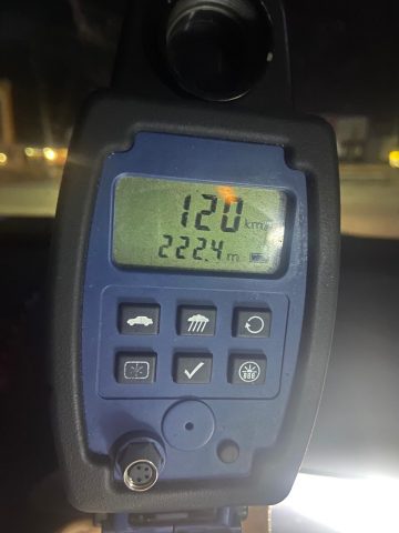 Në zonën ku kufizimi i shpejtësisë është 70 km/h identifikohet shoferi duke drejtuar mjetin me 120 km/h (gjobitet me 150€ dhe 2 pikë negative )