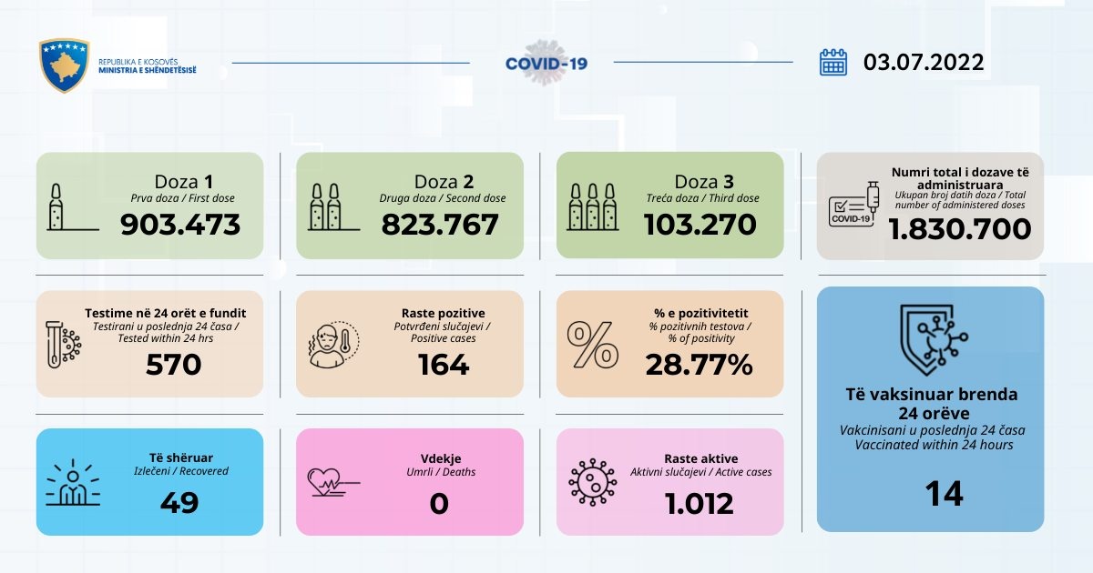 Sërish është regjistruar numër i madh i rasteve me Covid-19. Nga 570 testime të bëra, 164 qytetarë kanë dalë pozitiv me COVID-19.
