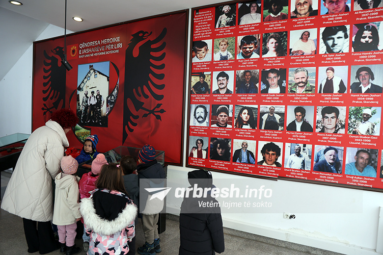 Janë pikërisht këta fëmijë, që sot 26 vjet pas luftës po dëgjojnë më vëmendje të plotë historinë dhe sakrificën e familjes Jashari në Prekaz të Skenderajt, nga ciceroni i Kompleksit Memorial “Adem Jashari, raporton Arbresh.info.