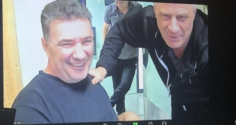 Ata janë parë të buzëqeshur teksa ishin në një lidhje direkte me familjarë të Shalës, nga e cila lidhje pastaj është shkëputur një fotografi