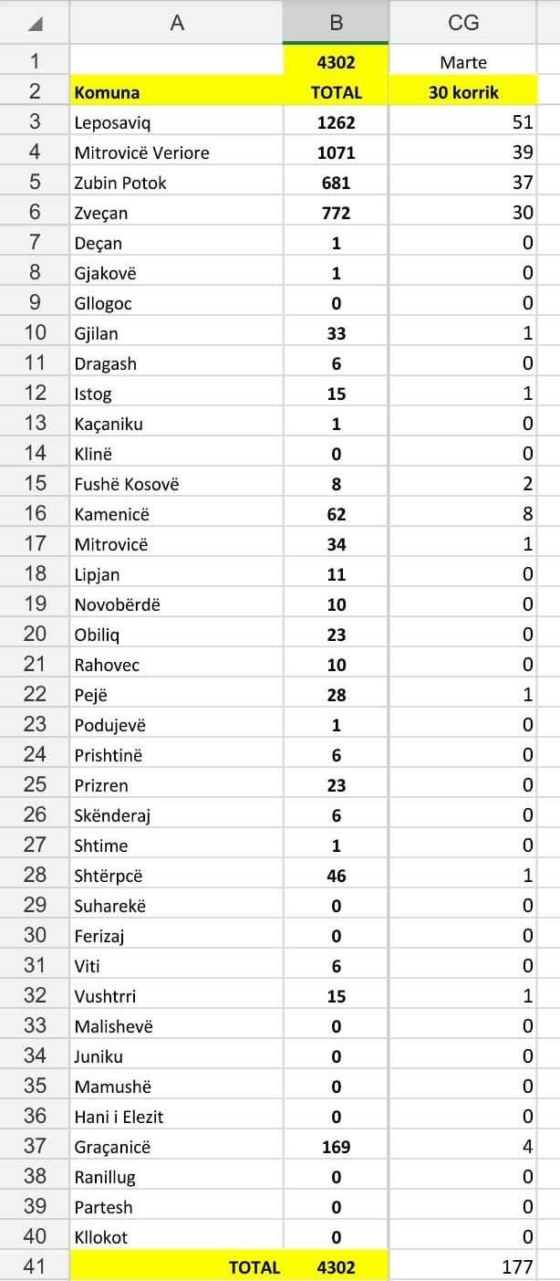 Ai bëri të ditur gjithashtu se në Leposaviq deri më tani janë bërë 1 mijë e 262 kërkesa, në Mitrovicën e Veriut 1 mijë e 71, në Zubin Potok 681 dhe në Zveçan 772 kërkesa.