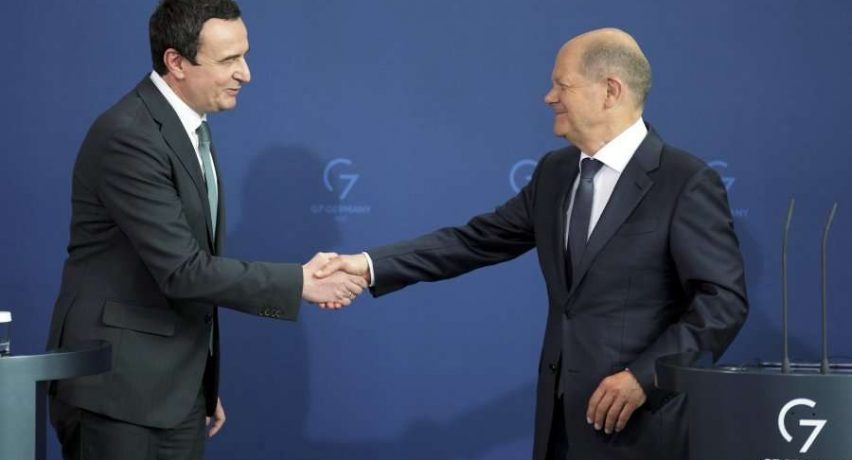 “Pas takimit, Kryeministri Kurti dhe Kancelari gjerman Scholz do të mbajnë një konferencë të përbashkët për media”, njofton Zyra e Kryeministrit të Kosovës, shkruan arbresh.info.