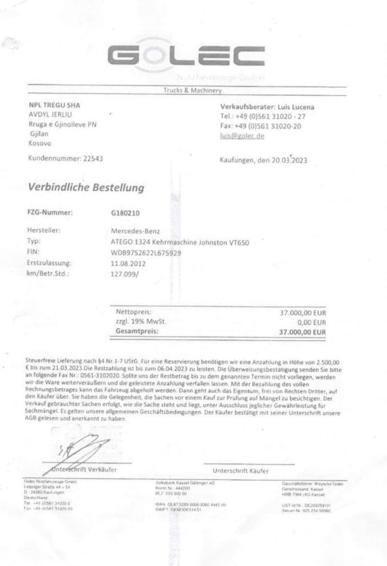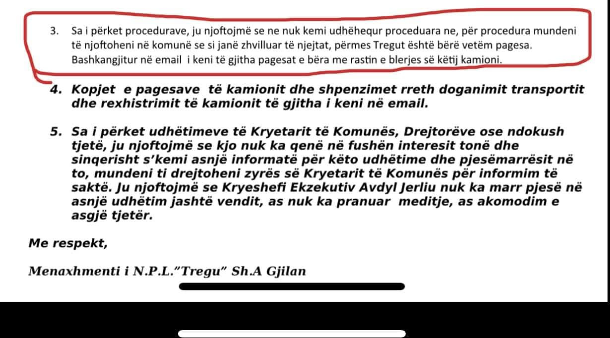 Sipas kësaj dege, tash së fundi, Hyseni ka blerë vetë kamionin me vlerë prej 47,919.52 eurosh, pa asnjë procedurë tenderimi dhe mosrespektimi të ligjeve për financat dhe prokurimin publik.