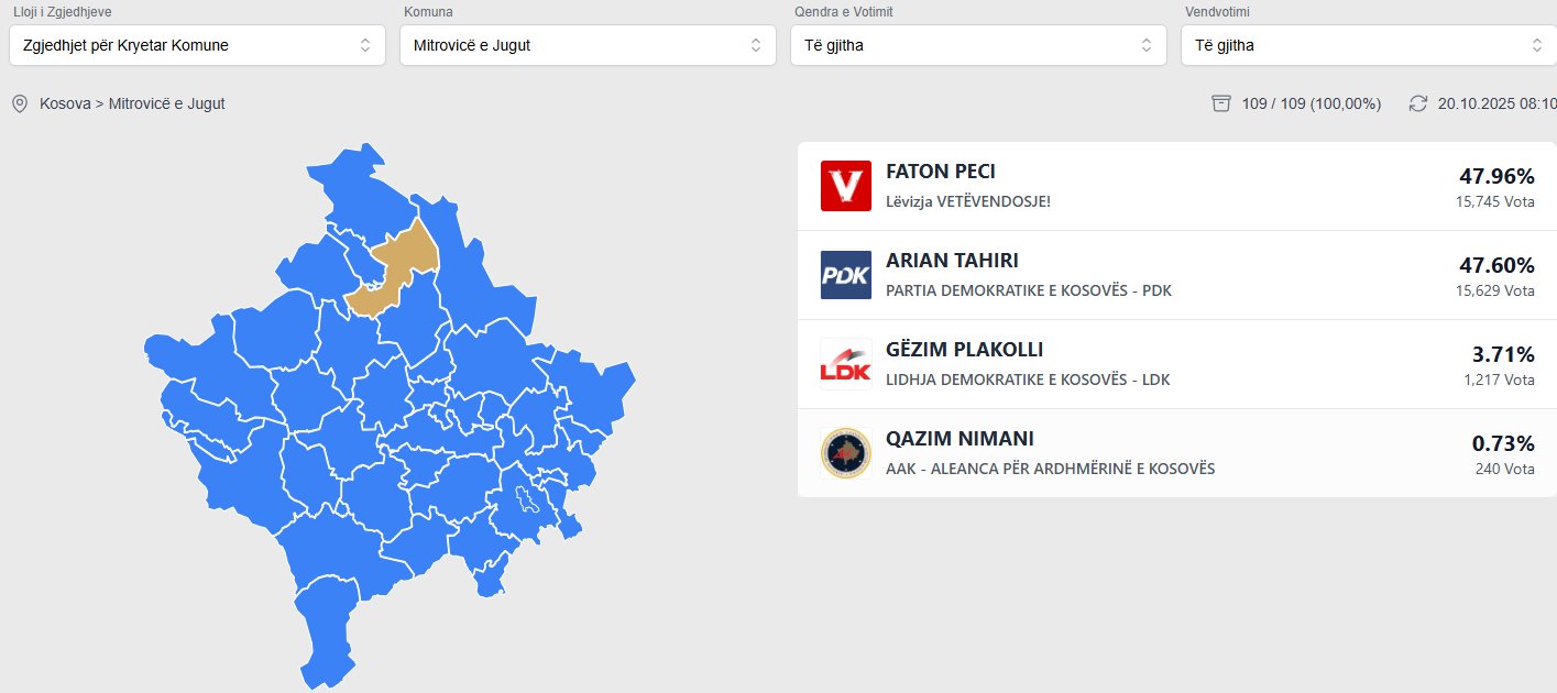 Komisioni Qendror i Zgjedhjeve ka publikuar rezultatin përmbledhës në komunën e Mitrovicës së Jugut, ku tanimë renditja e kandidatëve për kryetar ka ndryshuar.
