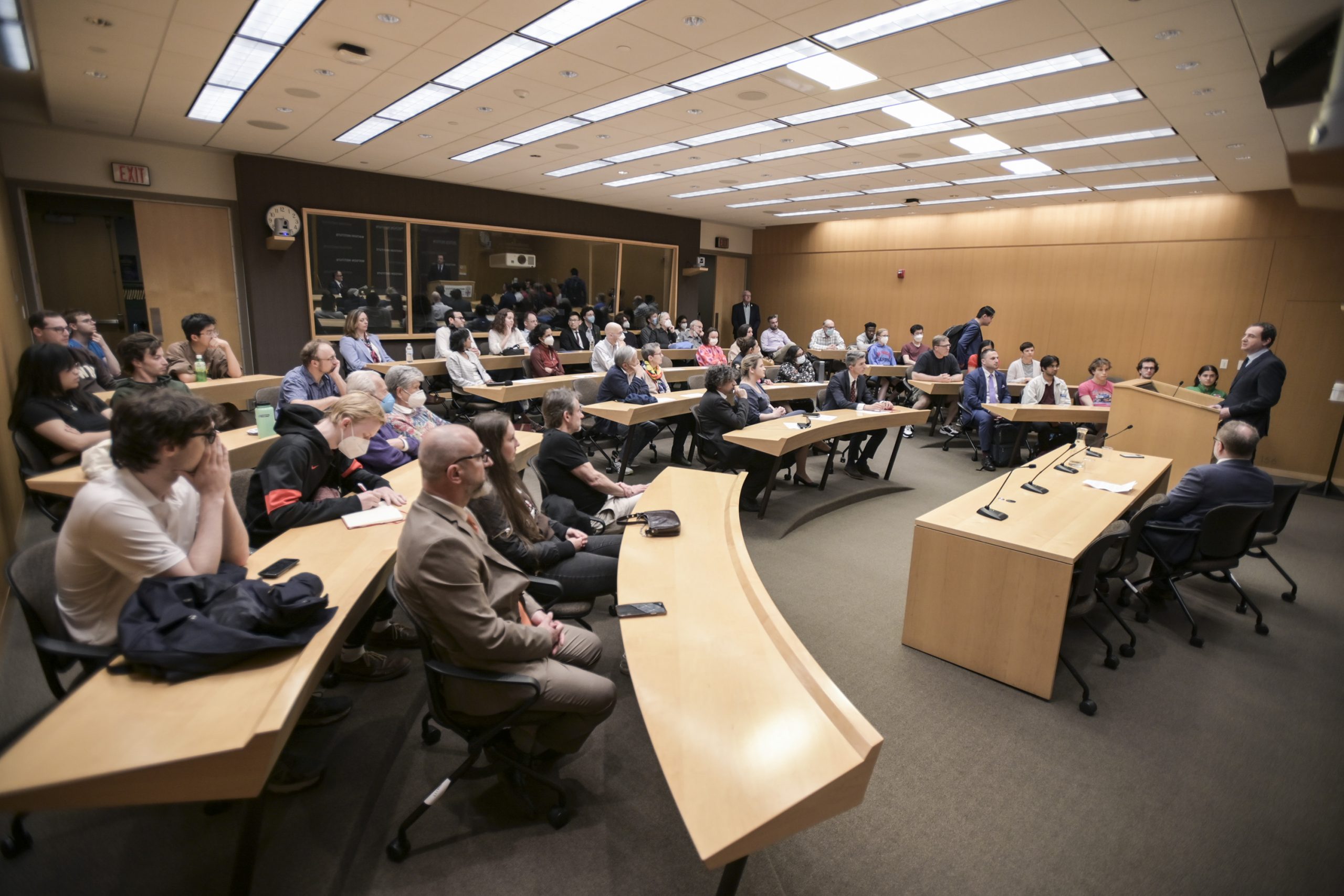 Pas përfundimit të fjalës, ka pasuar një interaktivitet pyetjesh e përgjigjesh me studentët dhe publikun e pranishëm në auditoriumin e Universitetit Brown./arbresh.info/