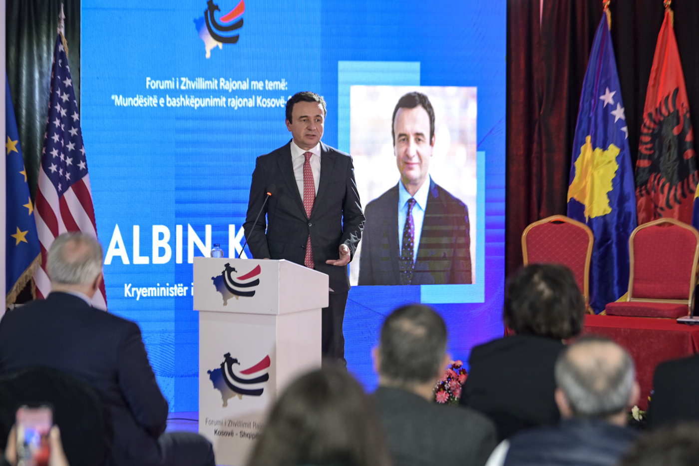 Në prag të festës së madhe të flamurit kombëtar, një ditë para 28 Nëntorit, Kryeministri i Kosovës, Albin Kurti, mori pjesë në Forumin e Zhvillimit Rajonal Kosovë-Shqipëri me temë “Mundësitë e bashkëpunimit rajonal Kosovë-Shqipëri”, një organizim i Ministrisë së Zhvillimit Rajonal, që u mbajt në ambientet e Pallatit të Kulturës, në komunën e Gjakovës.