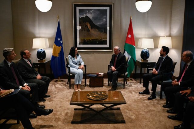 Presidentja e Kosovës, Vjosa Osmani, e cila po qëndron në New York ku po mbahet sesioni i 78-të i Asamblesë së Kombeve të Bashkuara, është takuar me Mbretin e Jordanisë, Abdullahu II, të cilin e ka falënderuar për mbështetjen që nga viti 1999 në vazhdimësi, sikurse edhe në GJND.