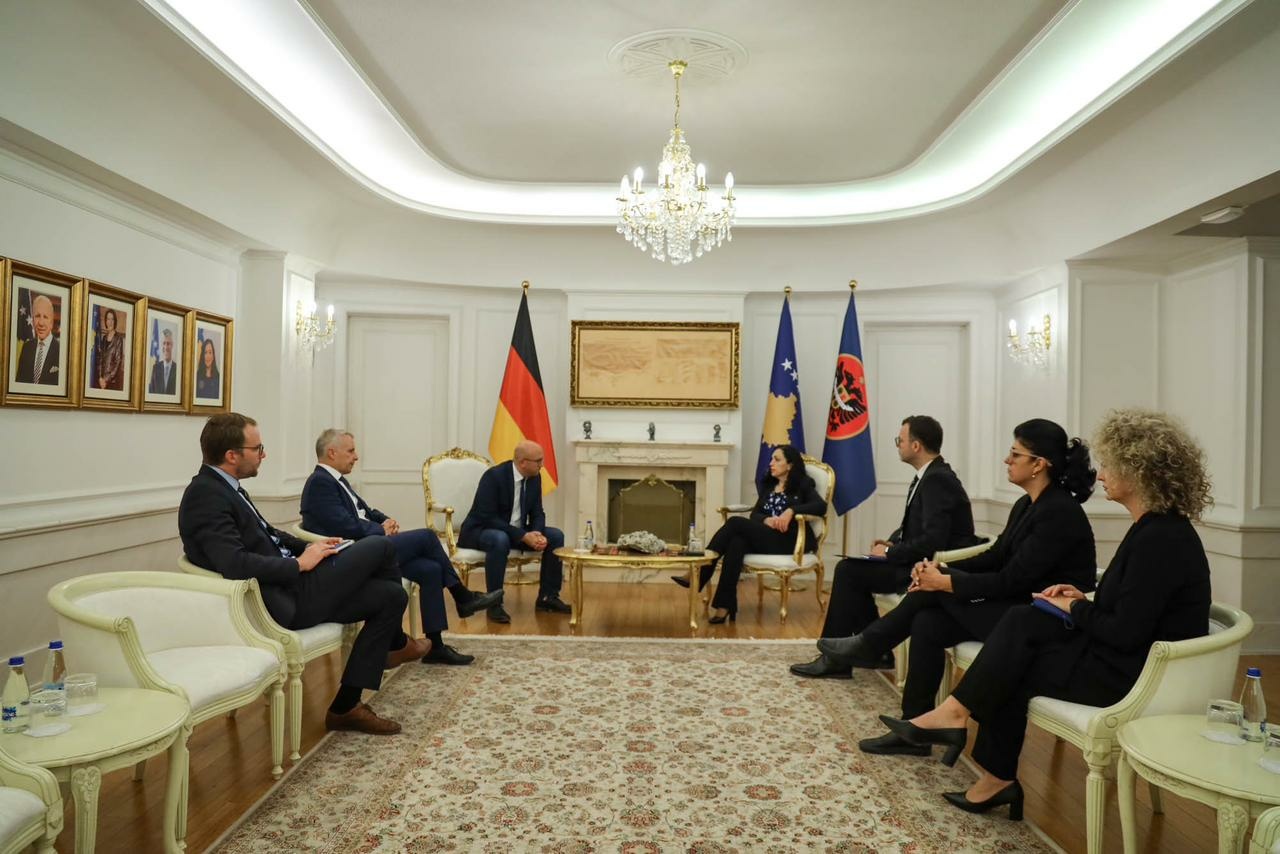 Presidentja e Republikës së Kosovës, Vjosa Osmani, ka pritur sot në takim të dërguarin e posaçëm të Republikës Federale të Gjermanisë për Ballkanin Perëndimor, Manuel Sarrazin dhe ambasadorin gjerman në Kosovë, Jorn Rohde.