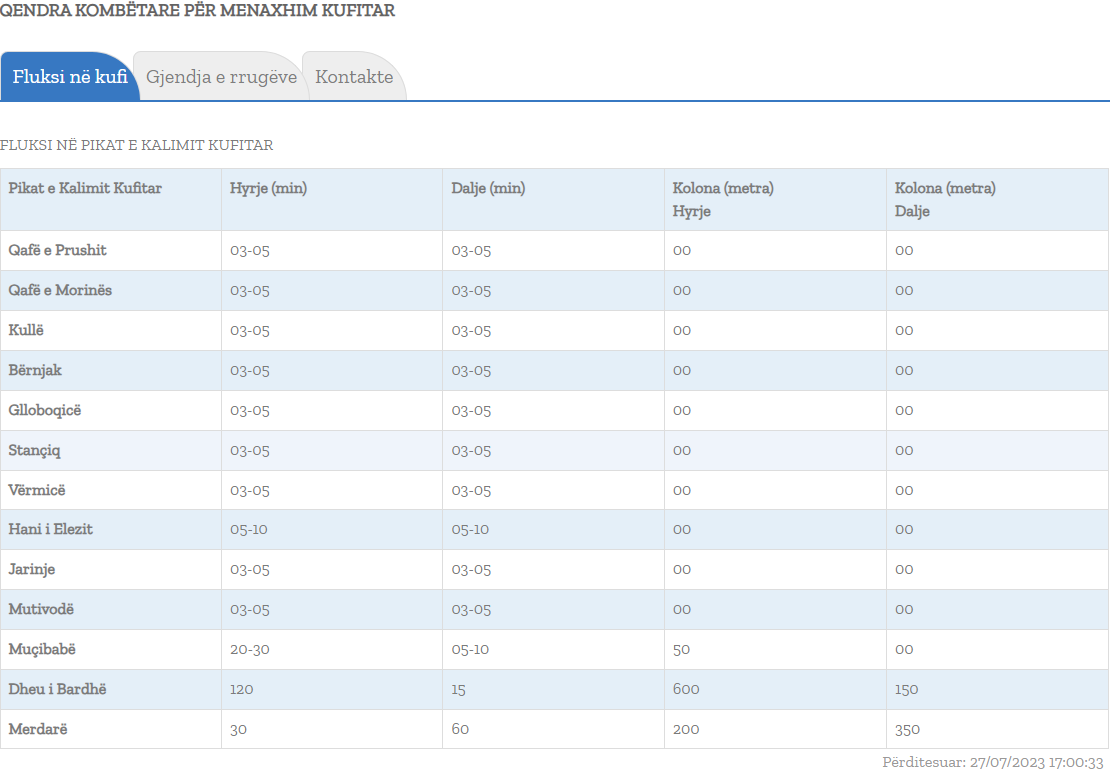 Në të gjitha pikat e tjera kufitare, pritjet maksimale për të hyrë në Kosovë janë 5 minuta, aq sa janë edhe pritjet për të dalë nga Kosova.