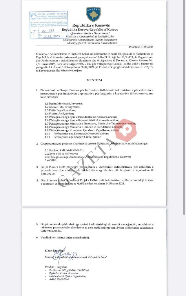 Sipas vendimit të nënshkruar nga ministri, Elbert Krasniqi, ky grup duhet ta finalizojë projekt udhëzimin administrativ deri me 1 shtator 2023.
