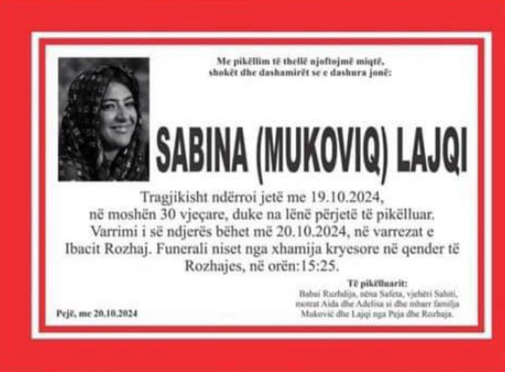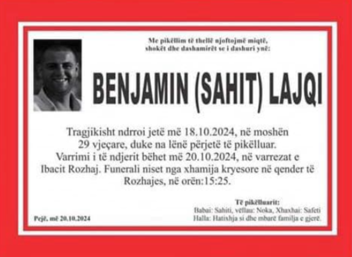 Në njoftim bëhet e ditur se funerali niset nga xhamia kryesore, në qendër të Rozhajës, në orën 15:25.
