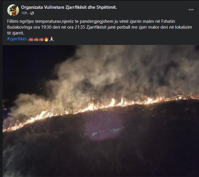 Tutje Organizata Vullnetare Zjarrfikësit dhe Shpëtimit thotë se përveç personave të pandërgjegjshëm në përhapje të zjarrit ndikoi edhe ngritja e temperaturave./arbresh.info/