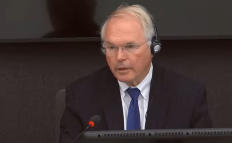 Diplomati amerikan Christopher Hill, po e jep dëshminë e tij në Hagë si i ftuar i mbrojtjes së ish-presidentit Hashim Thaçi.