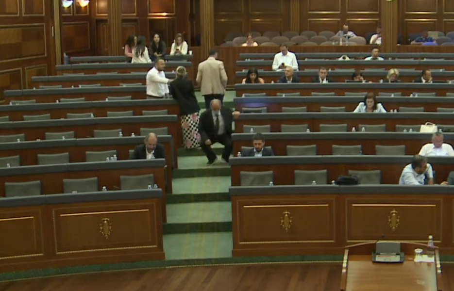 Këto ushtrime zgjatën për pak minuta, por momenti final ishte këmba e tij e cila shtrihej në karrigen e ku ulen deputetët e Lidhjes Demokratike të Kosovës./Telegrafi