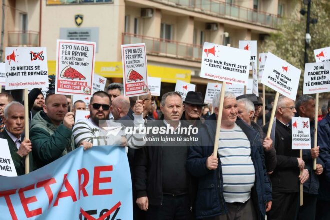 “Duam rritje pagash, jo rritje faturash”, “Rroga s’na del për të jetuar, ju na e rrisni rrymën”, “Qytetarët nuk janë bankomat”, “Nuk duam të ikim prej Kosove”./Arbresh.info/