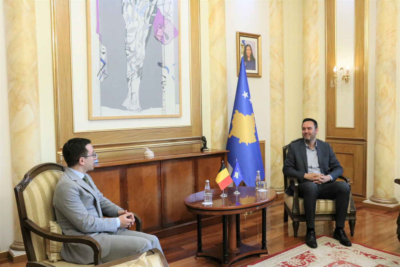 Kryetari i Kuvendit të Republikës së Kosovës, Glauk Konjufca, ka pritur sot në takim Shefin e Zyrës Belge në Kosovë, Julien Sassel.