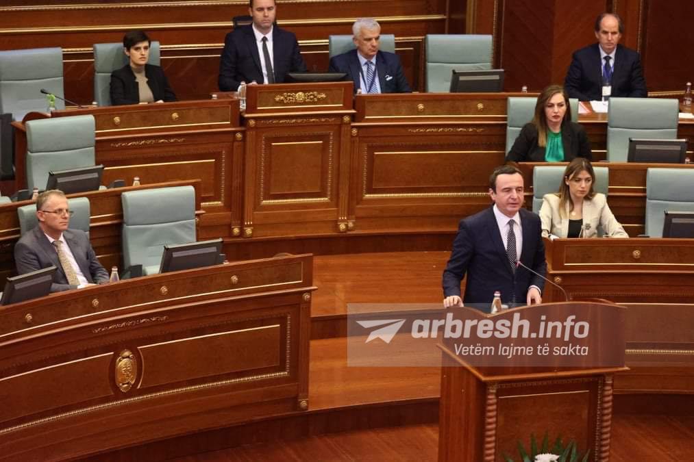Kryeministri Albin Kurti foli në seancën e Kuvendit të Kosovës që shënon 23-vjetorin e ndërhyrjes ushtarake të NATO-s në Kosovë.