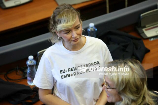 Me një paraqitje krejt tjetër, për dallim nga deputetët e tjerë është shfaqur deputetja dhe aktorja Adriana Matoshi.