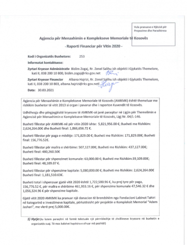Nga ku sipas raportimit në vitin 2020 është kaluar buxheti i paraparë për tu shpenzuar.