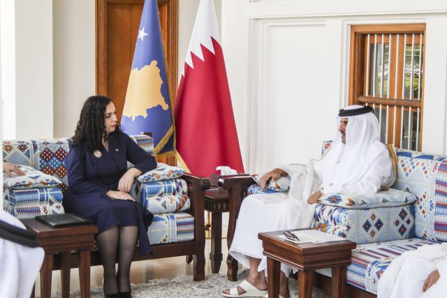 Presidentja, Vjosa Osmani Sadriu ka takuar Emirin e Shtetit të Katarit, Sheikh Tamim bin Hamad Al Thani gjatë vizitës zyrtare në Doha.