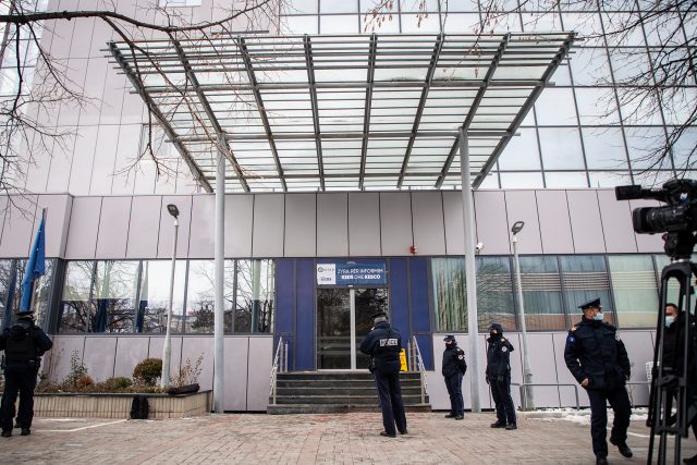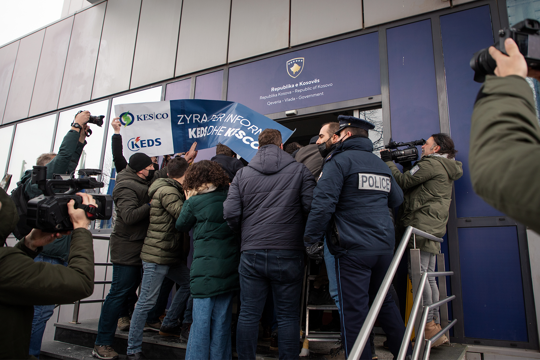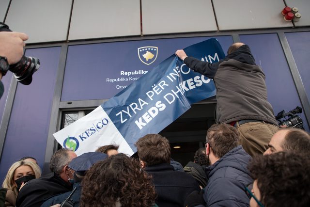 Partia Socialdemokrate ka mbajtur sot një aktivitet protestues në objektin e Qeverisë së Kosovës, duke i vendosur një baner të KEDS-it në hyrje të kësaj zyre.