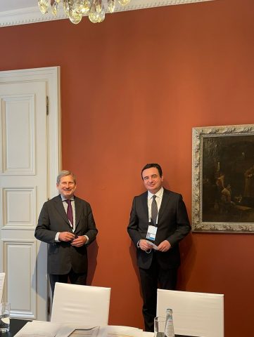 Në ditën e parë të pjesëmarrjes në Konferencën e Sigurisë së Mynihut, Kryeministri i Republikës së Kosovës, Albin Kurti, i shoqëruar nga zëvendëskryeministrja, njëherit ministrja e Punëve të Jashtme dhe Diasporës, Donika Gërvalla, u takuan me Komisionerin e Bashkimit Evropian për Buxhet dhe Administratë, Johannes Hahn.