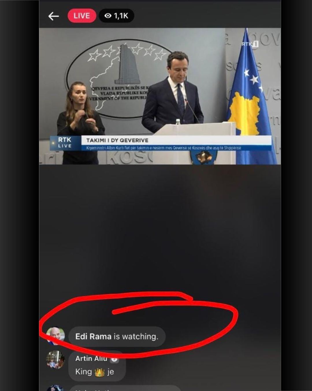 Përmes fotografisë së mëposhtme shihet faqja zyrtare e Edi Ramës duke e përcjellë këtë konferencë të Kurtit.